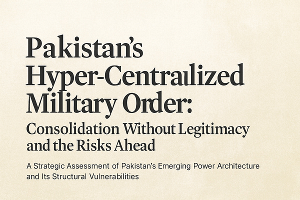 Pakistan’s Hyper-Centralized Military Order: Consolidation Without Legitimacy and the Risks Ahead